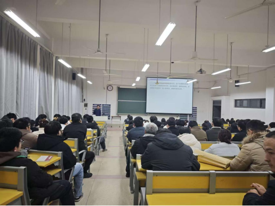 在明理南112教室举行年度党员培训活动。本次培训邀请原离退休工作处处长桂曙光为全体教师党员及学生党员作专题辅导,主题聚焦“学习遵守党章,坚定理想信念”。