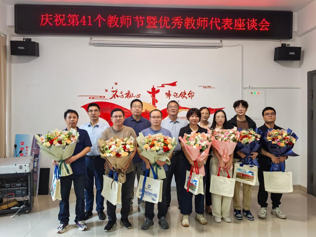 在学院三楼会议室召开庆祝教师节暨优秀教师代表座谈会。学院党政领导班子成员、受表彰的优秀教师代表参加座谈会,会议由副院长卢小雨主持。