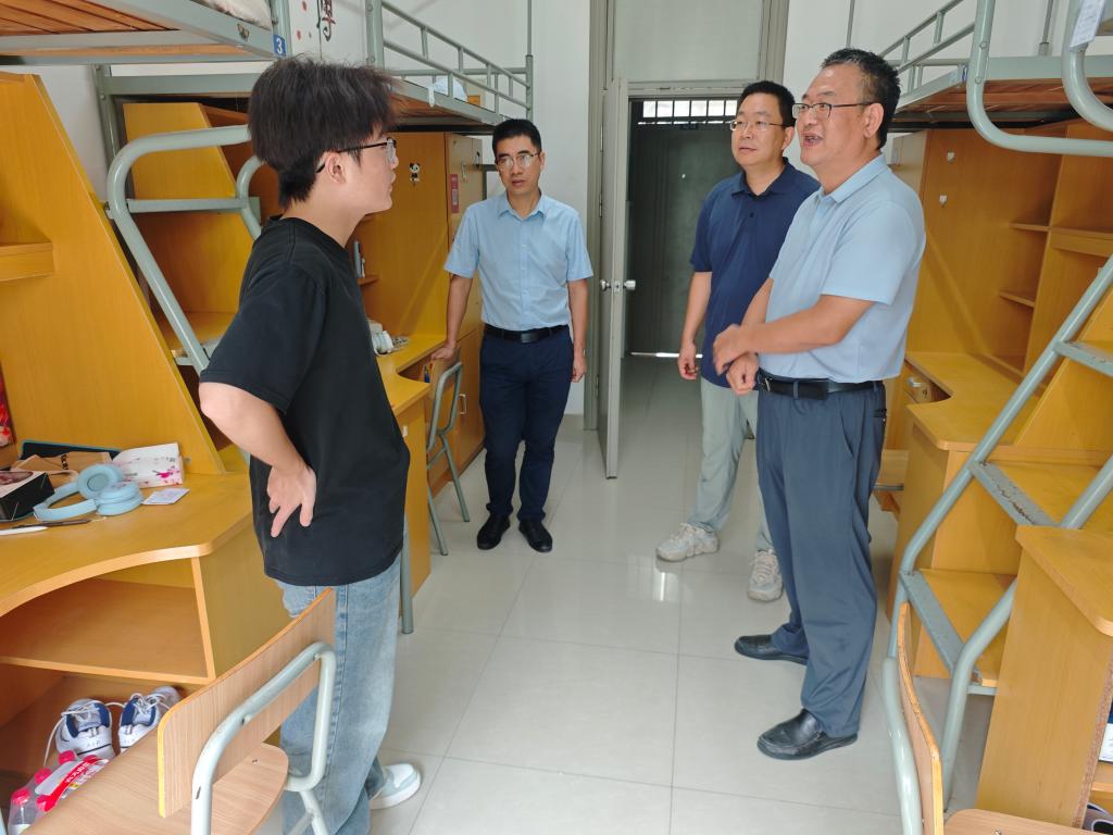 党委书记孙东升、常务副院长高娟、党委副书记余水、副院长卢小雨带领新生辅导员一行,深入学生宿舍,亲切看望刚刚入学报到的2025级新生,为他们送去新学期的问候与祝福。