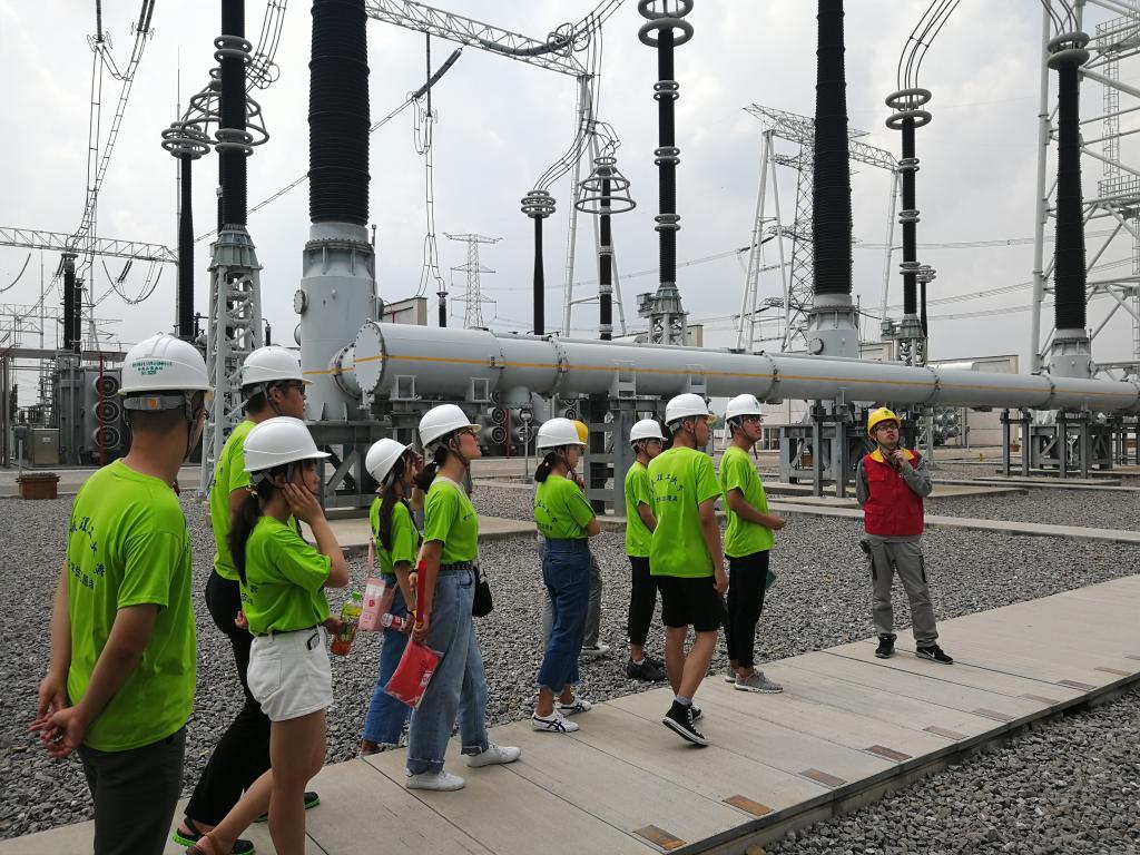下午2点,团队一行来到1000kV特高压淮南站。在工作人员的带领下,先后参观了变电站的主变区、1000kVGIS区、无功补偿区以及500KV设备区。在现场轰鸣的机组声中,大家认真聆听工作人员的讲解,并对身边这些在高温环境下依然一丝不苟,认真工作的工作人员致以了崇高的敬意。现场一次设备参观结束后,队员们来到主控楼,从一排排精密的监控系统中能观看整个变电站的运行数据和控制回路,针对电网平时的运行与维护等方面的问题,调研团队与变电站的运维人员也进行了深入交流,并与之探讨了特高压对于我国节能减排的重要意义。