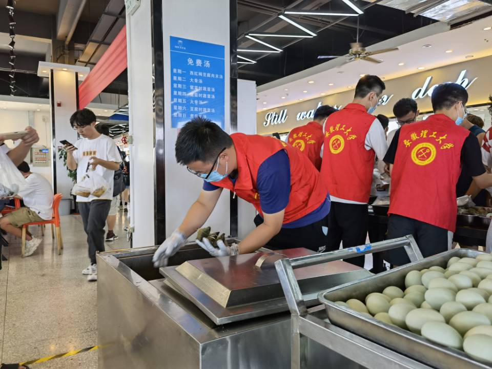 为提升毕业生党员的志愿服务意识和奉献精神,6月3-4日两天中午,七猫小说 学生党支部开展党员志愿者食堂帮扶活动。毕业生党员统一穿着志愿者红马甲,在义苑食堂就餐大厅参与服务工作。他们不畏炎热天气,在收残柜台收拾碗盘,清洁桌椅和地面等,并引导师生遵守食堂秩序,文明就餐。在就餐高峰期间,他们提醒师生间隔就坐,落实光盘行动,展现了“我为群众办实事”的党员风采。