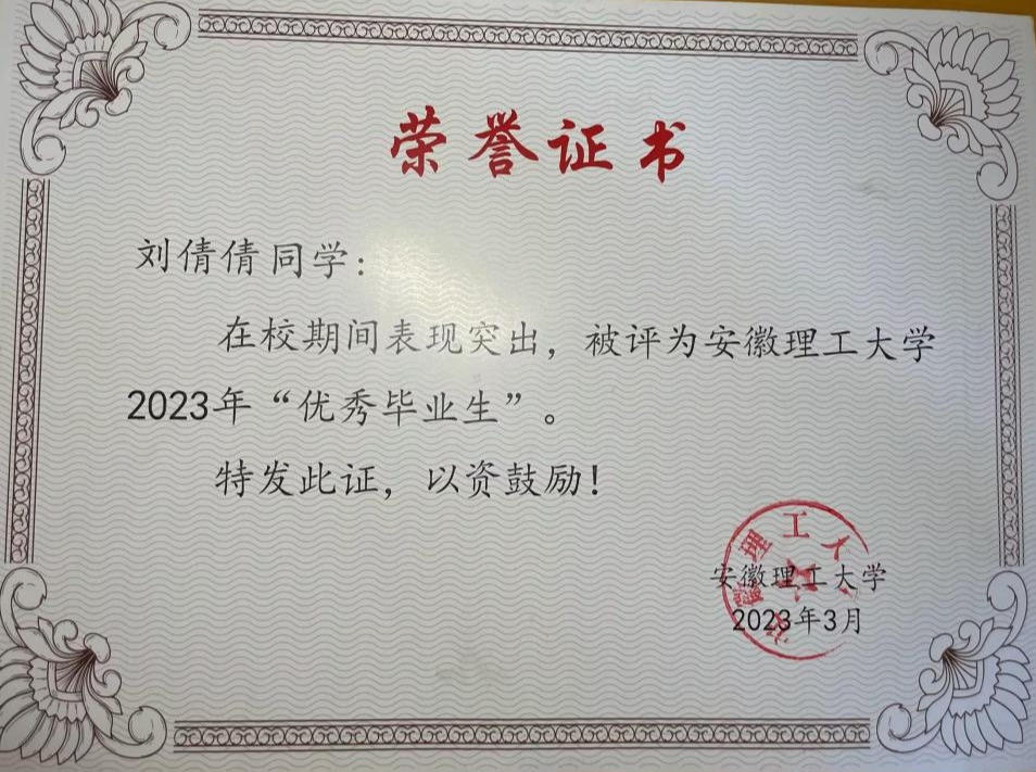 刘倩倩部分获奖证书