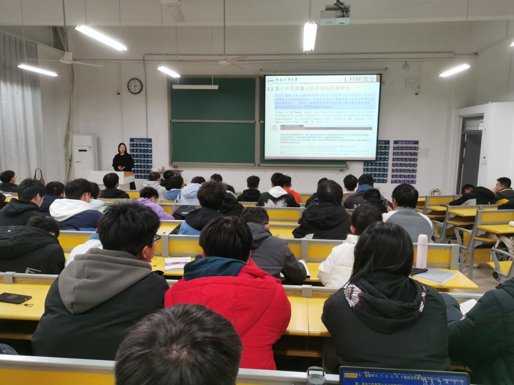 2019届应用物理专业校友、合肥工业大学在读硕士研究生张玉回校交流。学院各年级100余人参加了报告会。