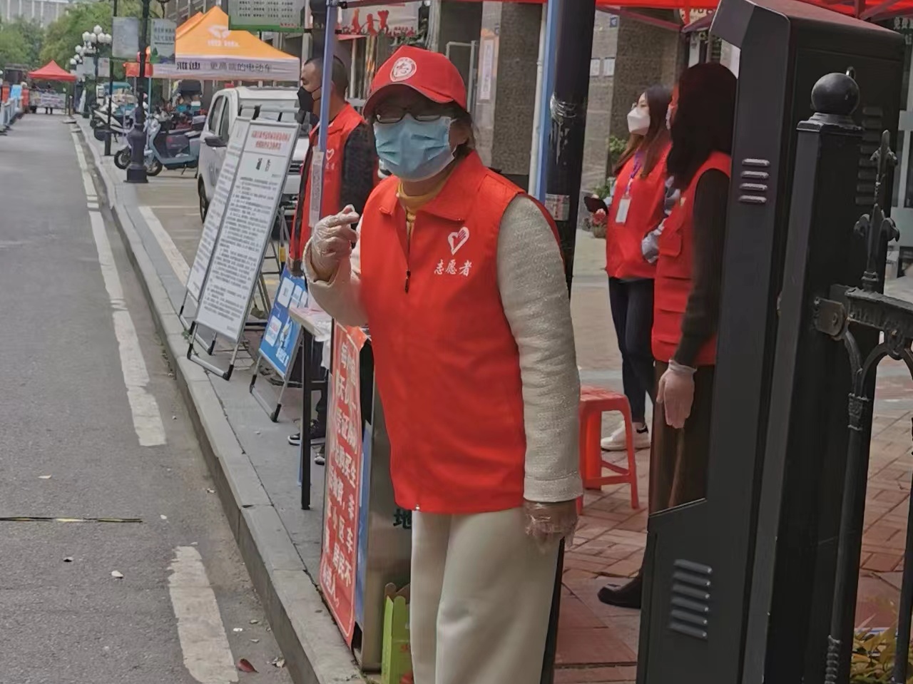 还有潘桂侠、陶永舒等党员教师不断加入疫情防控的队伍里来。他们胸前佩戴着党徽,默默奉献,做好所在社区里的“哨兵”。