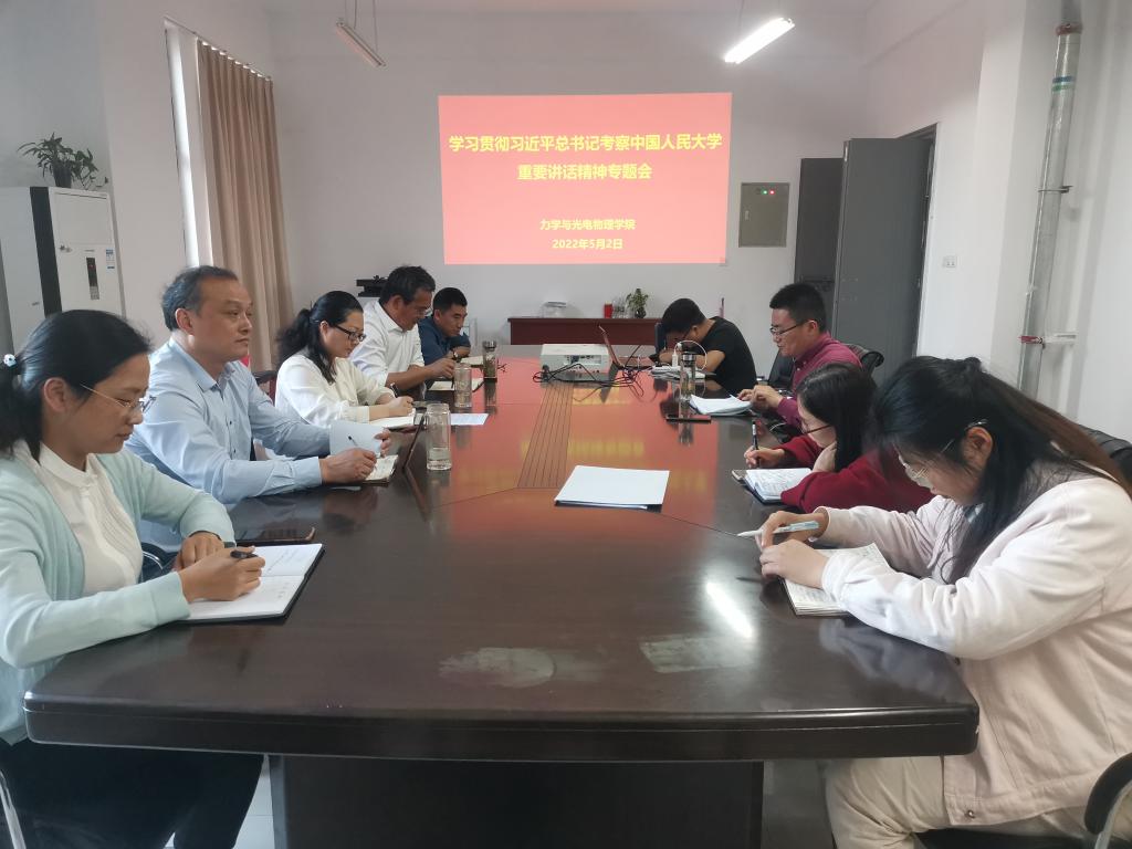 党委通过开展党委理论中心组集中学习、线上观看视频、师生座谈交流、主题党日活动等方式,认真学习领会习近平总书记到中国人民大学考察调研时的重要讲话精神,结合各自学习工作实际分享学习感悟。师生们纷纷表示将牢记党的教诲,立志民族复兴,不负韶华,不负时代,不负人民,在实现中华民族伟大复兴的时代洪流中踔厉奋发、勇毅前进!