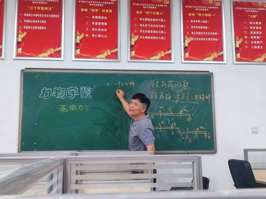 活动中,与会教师就力学课程的教学展开了热烈的讨论。尤其是近两年新进的年轻教师们争先恐后的发言,向陈老师请教:“如何把我懂得我会的,变成学生能懂能会?”“怎样上好习题课?”“黑板板书的设计布局如何更美观直观?”陈老师耐心细致地一一给予回答。