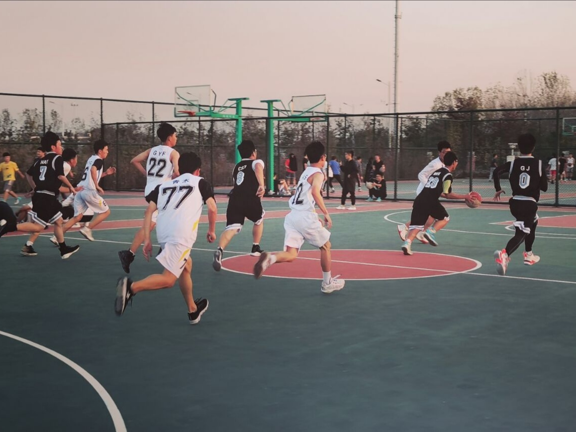 新生篮球争霸赛在学校义苑篮球场拉开帷幕。