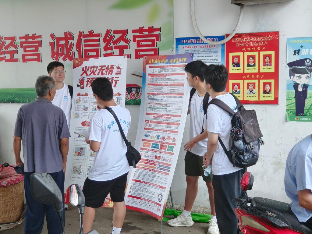 普法安全同宣传,筑牢思想“防火墙”。结合乡镇赶集日人流量大、宣传效果更明显的实际,队员们在杨公镇农贸市场门口搭建了临时的移动展架,进行反电诈、防溺水、交通等安全宣传。一部分志愿者带着国家安全知识小手册,走上街头、走进周边村镇与沿街店铺,通过“知识宣讲+有奖竞答”的方式,向居民群众普及国家安全基本知识,提高了当地群众的法律意识,助力乡村的法治建设。