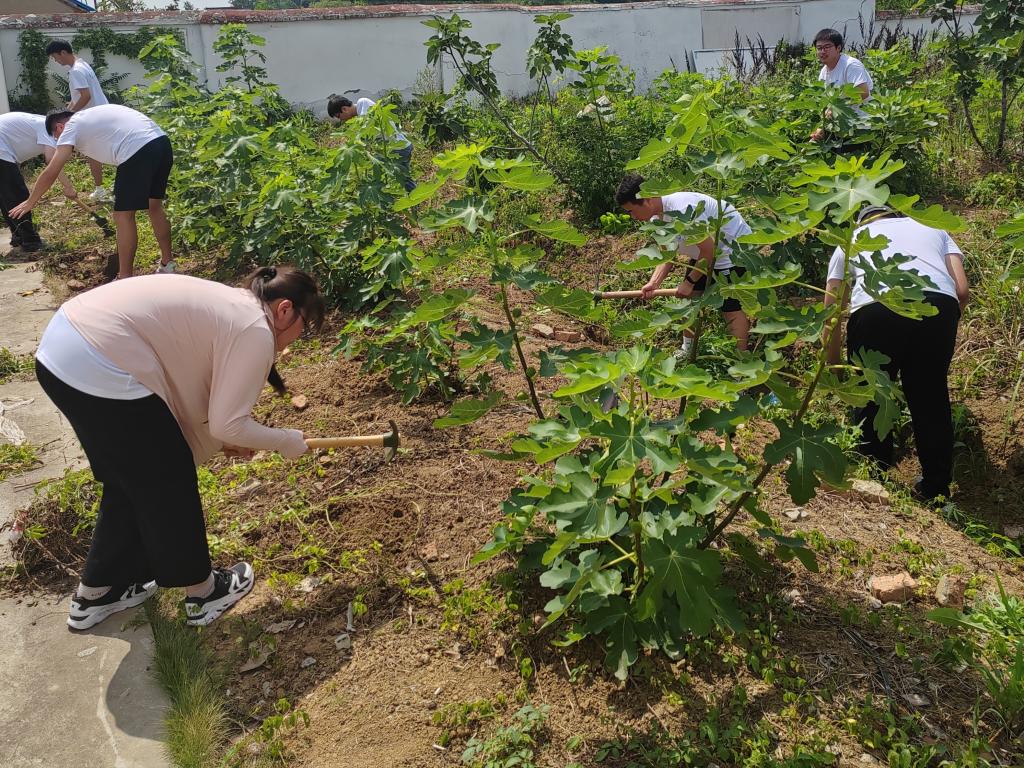 田间“大课堂”,青春大学习。在村里无花果产业区,志愿者们拎起镰刀、锄头等农具开始劳作,烈日炎炎下,经过两个小时的努力,杂草基本上被清理的干干净净。在村期间,实践团队员们纷纷走进稻田和瓜田实地调研,向村民学习水稻、西瓜等农产品的种植方法和技巧,真切感受到近年来乡村振兴取得的喜人成果,为乡村发展蒸蒸日上的态势感到自豪。
