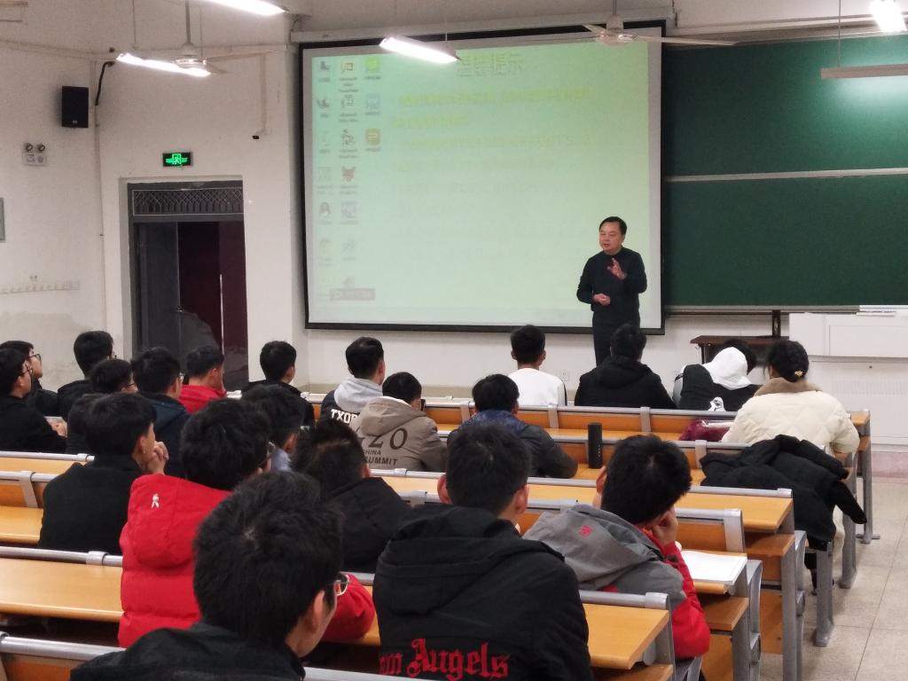 原电子信息工程专业92届校友张劲松来校为学生作励志报告。2019级全体新生参加报告会。