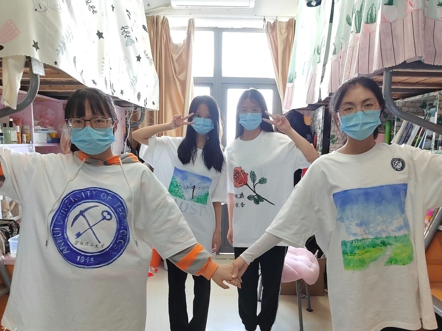 是我们共同的名字!”有绘画爱好的几个女生,在爱心T恤上绘制了母校校徽和风景留作纪念。学生们纷纷表示将持续勠力同心、众志成城、共克时艰,为打赢这场疫情防控战贡献力量。疫情防控,我们“衣”起加油!