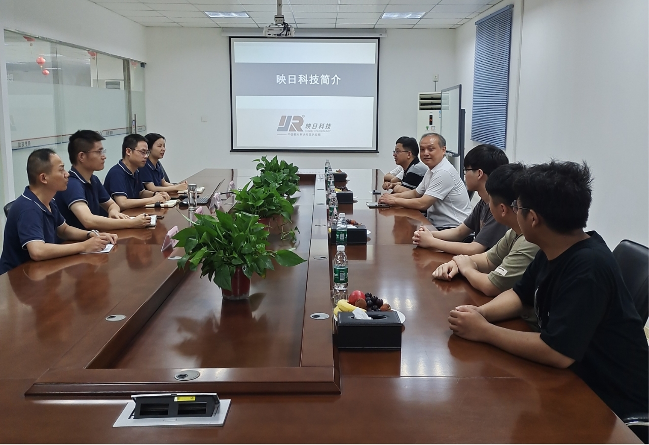 企业相关负责同志代表公司对圣宗强一行表示欢迎,映日科技总工程师曾墩风介绍了企业发展历程、发展概况、业务范围和未来的企业战略规划。圣宗强介绍了学院的基本情况、专业设置、人才培养、学生就业等方面内容。双方就用人需求、实习形式以及建立深层次合作等事宜进行深入探讨。双方一致认为深化校企更深层次融合,将学校资源优势与企业优势有效对接,对高校高质量就业和为企业持续高质量发展提供人才保障都是互利共赢的。