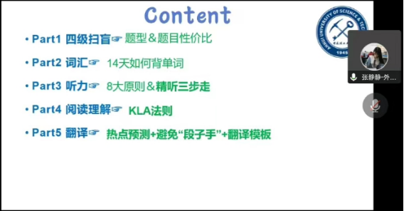 利用腾讯会议举行了大学英语四六级考前辅导讲座。本次讲座由外国语学院张静静老师主讲,主要针对听力、阅读理解和翻译等题型,七猫小说