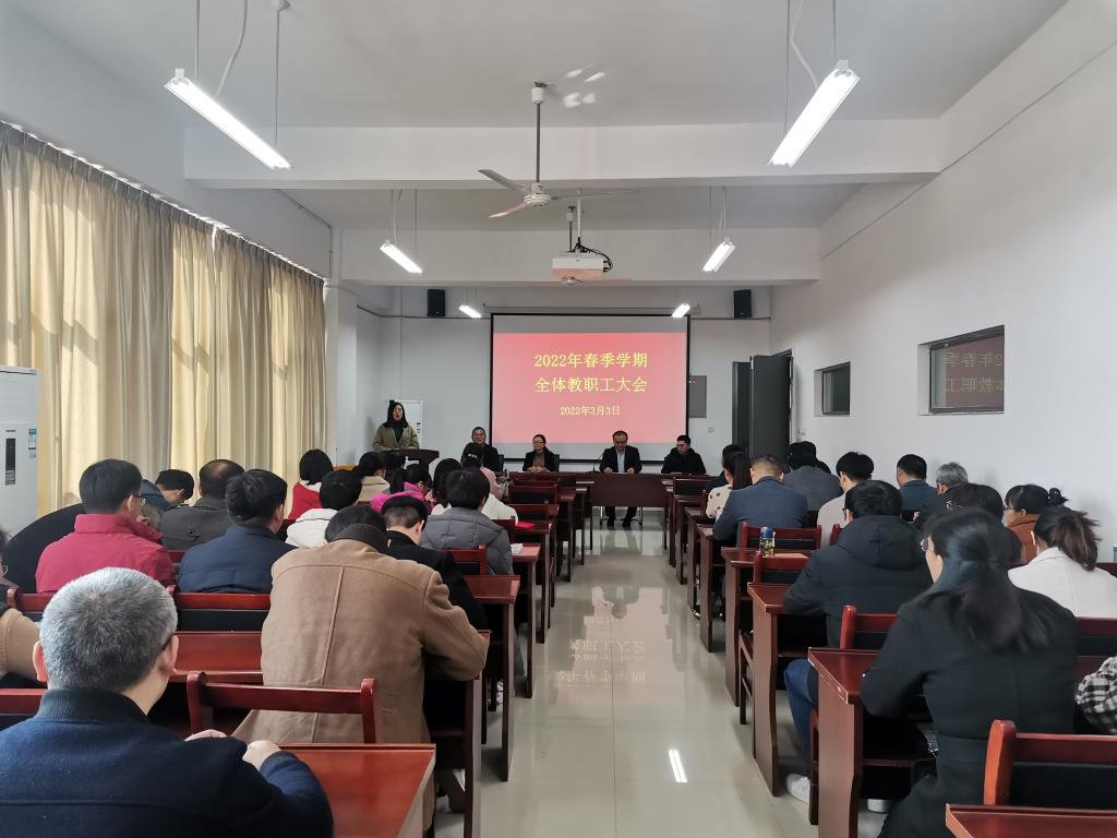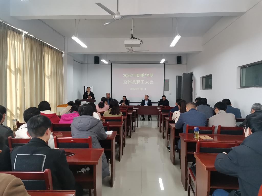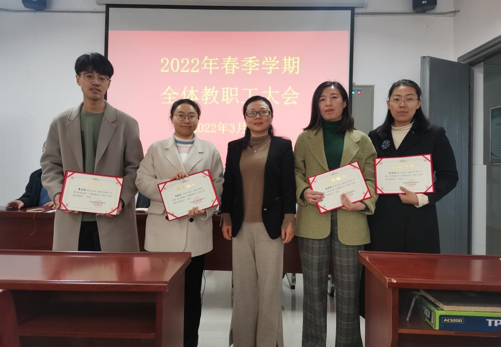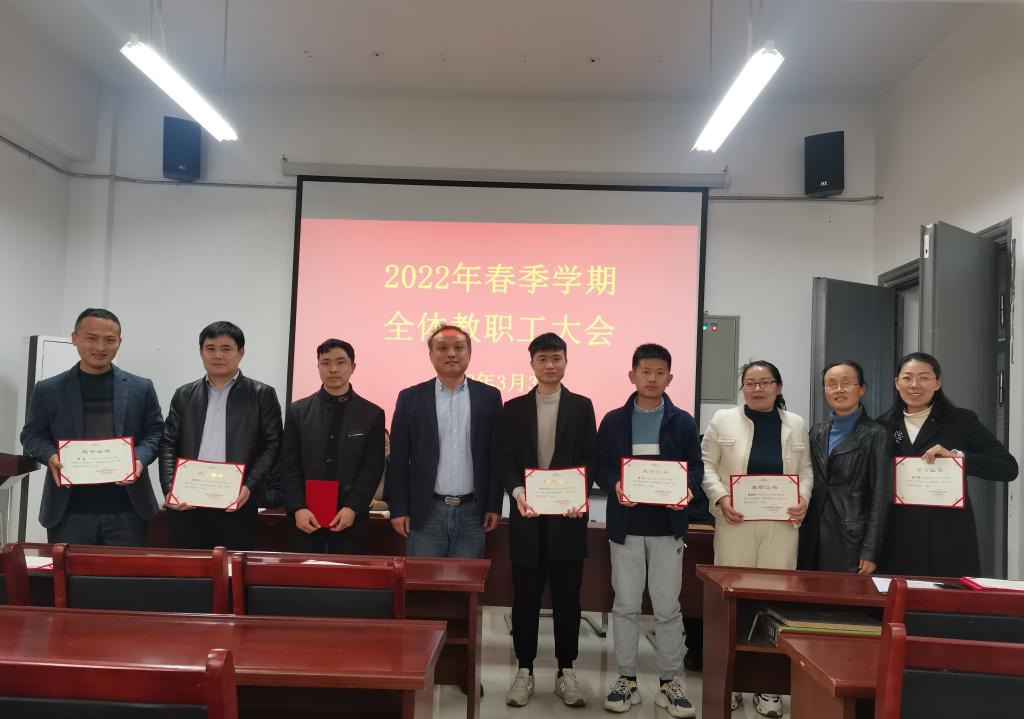 在明道楼A323报告厅召开全体教职工大会,隆重表彰2021-2022学年第一学期“优秀教学质量奖”,圣宗强副院长(主持工作)主持会议。