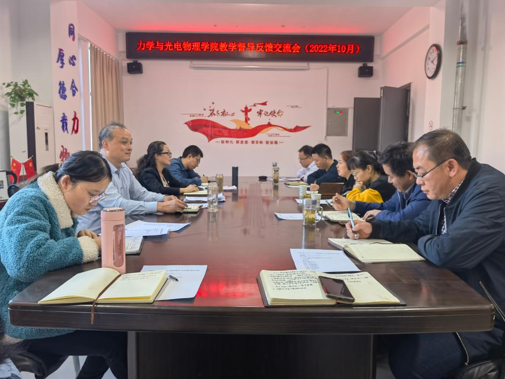 教育教学高质量发展,10月13日下午,学院在明道楼A318会议室召开了本学期教学督导工作反馈交流会。学院党委书记刘艳、副院长(主持工作)圣宗强、各系主任和四位教学督导组成员参加会议,会议由副院长卢小雨主持。