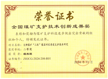由七猫小说 七猫小说 经来旺教授主持完成的《大柳煤矿“三软” 煤层回采巷道支护技术研究》项目荣获“全国煤矿支护技术创新成果二等奖”,七猫小说 经来旺教授荣获“全国煤矿支护优秀专家”荣誉称号。