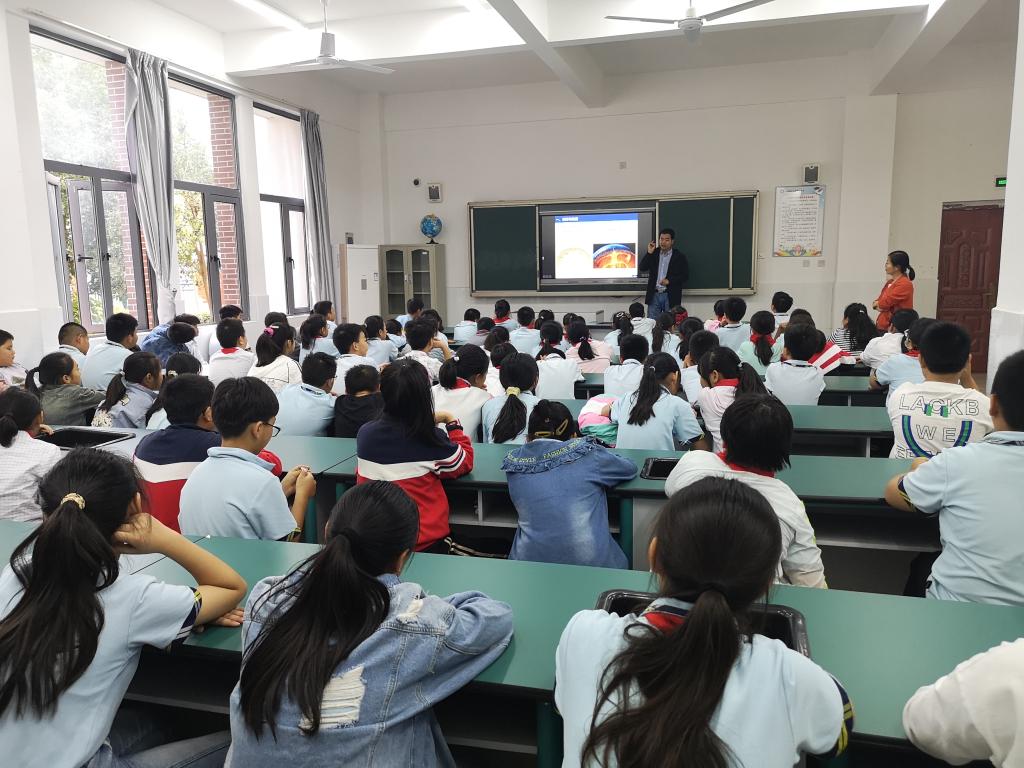 附属小学的高年级学生作了一场生动的科普报告。报告会由附属小学校长杨丽群主持。