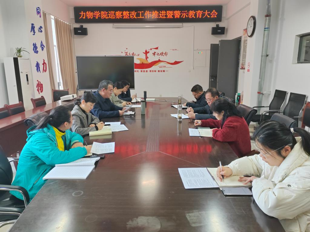 在明道楼A320会议室召开巡察整改工作推进会议暨警示教育大会。学院党委领导班子成员、党委委员等参加会议。会议由学院党委书记孙东升主持。