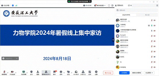 开展暑期线上集中家访座谈会。学院领导、专职辅导员以及500余位家长代表出席本次会议。会上,学院学工干部结合自身工作实际,分别从大学生资助政策、宗教政策、征兵政策、学生日常管理、党团员发展、心理健康教育以及24级新生生活学习规划等多方面进行介绍,鼓励同学们假期进行合理的学习规划。在家校互动交流环节中,听取了学生家长对学校、学院教育管理工作的意见和建议,并针对学生家长所关心的升学就业等方面的问题进行了耐心细致的解答。
