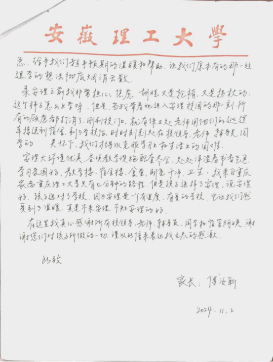 收到了一封来自学生家长的感谢信,字里行间满是真挚的感谢之情,诉说着这样一个故事。