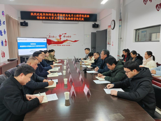 发展现状、学科及专业建设、教育教学与科研发展等方面的基本情况。会上,吴学军对阜阳师范大学物电学院的历史沿革、人才培养、学科发展、学生培养等情况进行了介绍。随后,双方围绕党建引领、专业建设、学生管理、团学工作等实际工作中共性难题进行了深入探讨和交流。