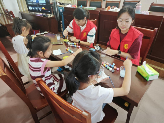 在支教课程中,实践团成员精心设计了各类主题活动,将美育元素融入其中。通过“彩绘淮南”艺术活动,孩子们对家乡的文化认同感和文化自信得到了显著提升。实践团还带领孩子们制作非遗蓝晒艺术画、学唱安徽民歌,让他们在活动中感受中国非遗文化的丰富内涵。美育不仅是素质教育的重要组成部分,更是培养孩子们综合素养、激发创造潜能的关键。