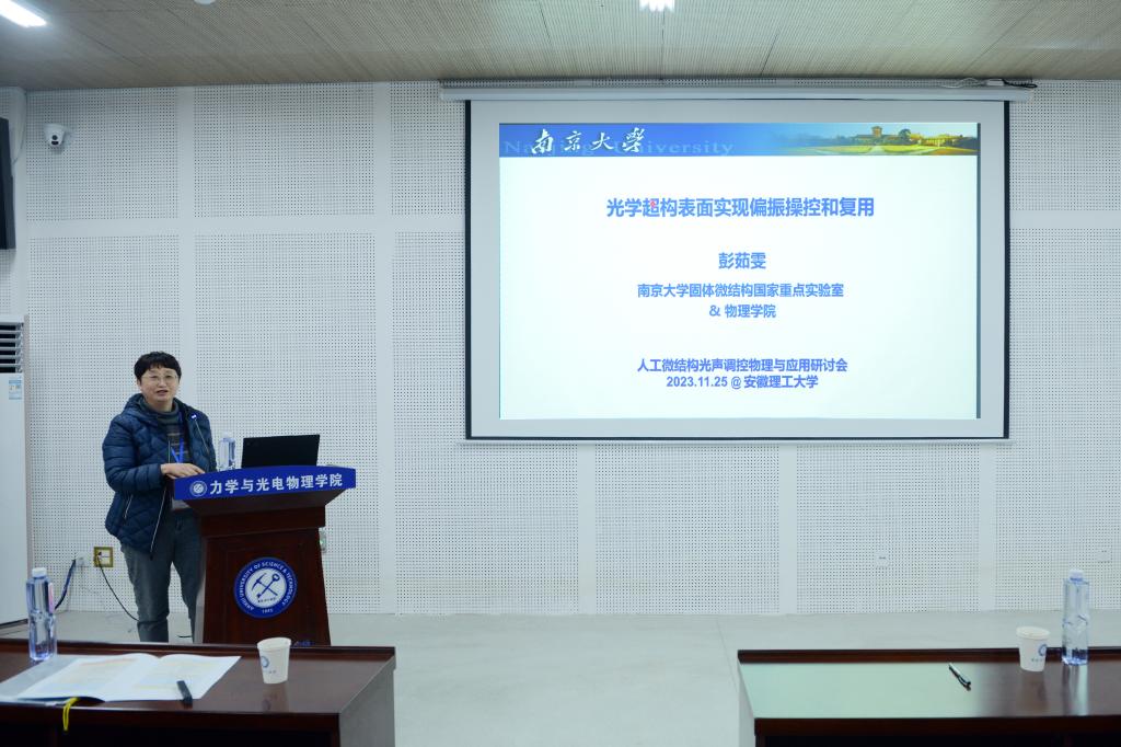 等单位的参会代表分别做了十余场报告。报告精彩纷呈,内容涵盖人工微结构光学原理探索,微结构光、声场调控以及拓扑光、声子学,超构材料、超构表面的设计与应用等研究方向,展现了基于人工微结构的光声调控重要进展和学术成果,与会代表积极交流探讨,研讨会现场学术氛围浓厚、气氛热烈。